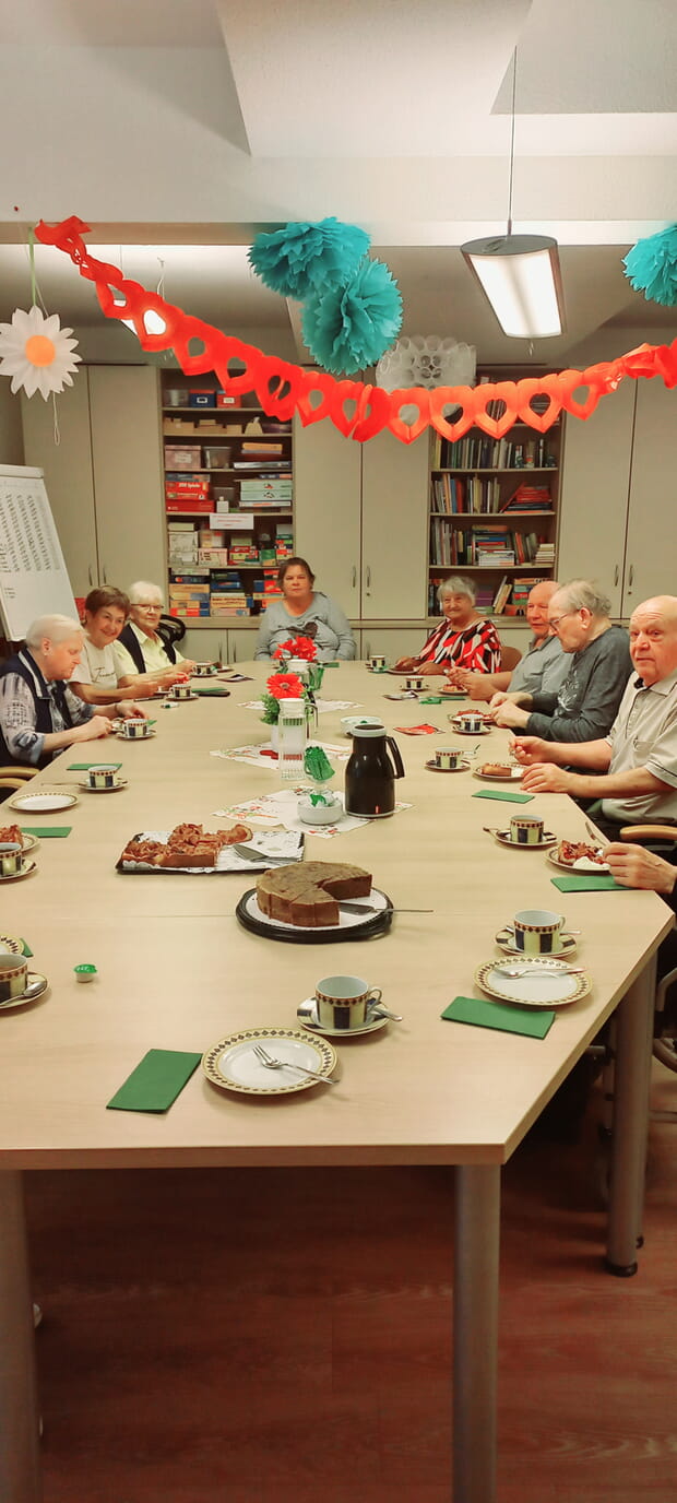 Eine liebevolle Geste bereitet uns jeden letzten Donnerstag im Monat der Förderverein aus Lauffen. Hier werden unsere Geburtstagsjubilare aus dem laufenden Monat nochmals gefeiert. Die Bewohner sind stolz und freuen sich über die Einladung. Zusammen zu sitzen und diesen Ehrentag gemeinsam mit den anderen zu genießen, wie es früher in der Familie war, ist jedem eine große Freude. Leckerer selbst gebackener Kuchen wird in jeder Feier von den fleißigen Damen des Fördervereins gespendet. Dazu ein frisch aufgebrühter Bohnenkaffee…ganz wie daheim. Es sind die kleinen Momente, die hier in dieser Gemeinschaft zählen und wichtig sind. Dafür ganz herzlichen Dank an diesen wichtigen Verein, der uns das ganze Jahr über begleitet und unterstützt. Gemeinsam können wir viel bewegen! Hier im Seniorenzentrum bereichert uns der Förderverein mit Organisationen und der Durchführung von kleineren Ausflügen, wie z.B. der Besuch der Kneippanlage oder eines Eiscafés. Auch werden Besuche einzelner Bewohner zum Vorlesen, Spielen und Spazierengehen angeboten. Um all diese schönen Dinge zu verwirklichen wird dringend Unterstützung gebraucht. Wenn Interesse und ein wenig Zeit besteht, den Menschen hier im Seniorenheim ein Lächeln ins Gesicht zu zaubern, ist der Förderverein unter dem Kontakt der Vorsitzenden Frau Dagmar Zoller-Lang E-Mail: zl@langkasper.de zu erreichen.