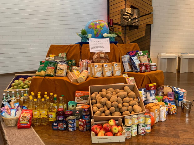 Aber ohne die vielen Spenden für den Erntedankaltar, hätten wir so nicht unseren Erntedankgottesdienst feiern können. Ein herzliches Vergelt´s Gott sagen wir nicht nur der Familie Munz, Familie Moser, dem Obstbau Schmid, den Schülern der Klasse 3-4 und 5-6 der Erich Kästner Schule, sondern auch all den anderen Spendern, die dazu beigetragen haben, dass eine Weitergabe der Lebens- und Hygienemittel an die Fahrtafel, und somit auch an die Bedürftigen in unserer Stadt, erfolgen kann. Herzlichen Dank!