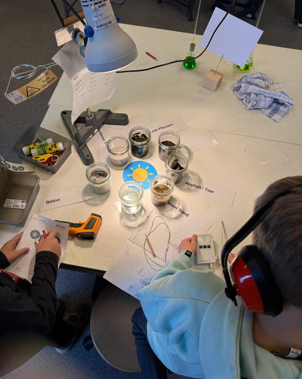Am Montag, den 13.10.25 besuchte die Klasse 3c die Experimenta in Heilbronn und nahm dort an einem spannenden Laborkurs zum Thema „Wetter“ teil. Zu Beginn durften die Kinder an verschiedenen Stationen selbst zu kleinen Wetterforscherinnen und -forschern werden. Mit einer Windmaschine wurde gemessen, wie stark der Wind bläst, und die Schülerinnen und Schüler lernten, was Wind eigentlich ist und wie er entsteht. Es wurde mit Thermometern untersucht, wie sich die Temperatur verändert, wenn etwas im Schatten oder unter einer Lampe steht und mit Teelichtern sichtbar gemacht, dass sich Luft bewegt, auch wenn man sie nicht sehen kann. Ein besonderes Highlight war das Basteln eines eigenen Windmessgeräts, das jedes Kind mit nach Hause nehmen durfte. Außerdem konnten die Schülerinnen und Schüler vor einer echten Wetterwand ihren eigenen Wetterbericht moderieren, ganz wie im Fernsehen! Bei einem abschließenden Quiz konnten alle ihr neu gewonnenes Wissen nochmal unter Beweis stellen, bevor wir uns dann mit dem Zug wieder auf den Heimweg machten.