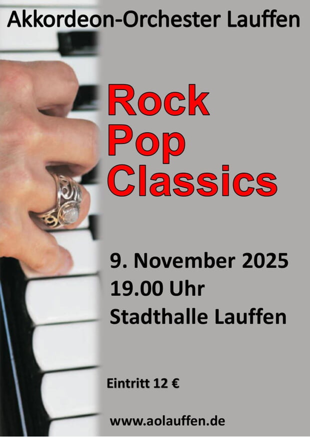 Bereits seit vielen Jahren ist das Akkordeon-Orchester Lauffen (AOL) in der ganzen Region für seine großartigen Konzerte bekannt. Am 9. November stehen beim Konzert „Rock, Pop, Classics“ bekannte Hits von Queen, Toto, Boney M. und vielen anderen auf dem Programm.