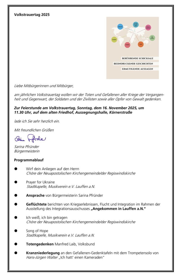 Sonntag, 16. November um 11.30 Uhr, Aussegnungshalle auf dem alten Friedhof