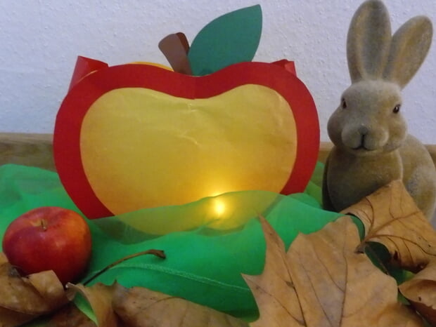 Leuchtende Äpfel beim Laternenfest