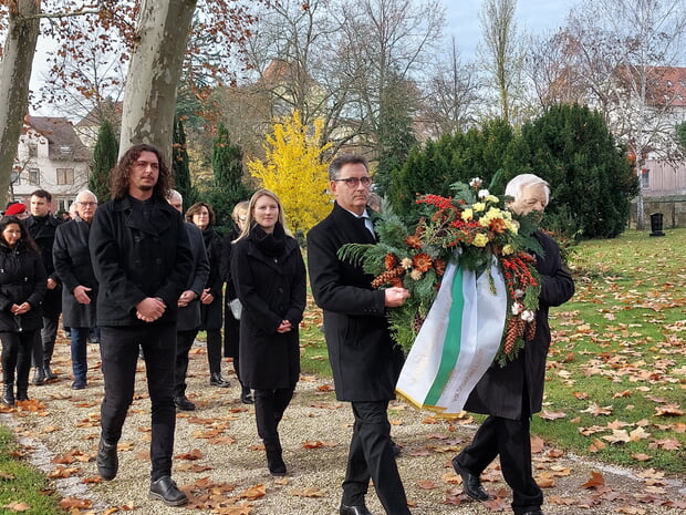 Bürgermeisterin Sarina Pfründer betonte: „Diesen Tag heute begehen wir in erster Linie nicht als Rückblick auf die beiden Weltkriege, sondern mit dem Auftrag für „Frieden für die Welt“. Das ist das wichtigste, was wir uns am Volkstrauertag bewusst machen können. Lassen Sie uns gemeinsam für ein konfliktfreies, starkes und freundschaftliches Europa eintreten, das auf die Welt ausstrahlen kann. Möge unsere stille Demonstration heute ein Zeichen der Hoffnung sein. Ein Zeichen dafür, dass wir aus der Geschichte lernen, dass wir uns nicht mit dem Unrecht und dem Leid dieser Welt abfinden, und dass wir weiterhin für den Frieden eintreten, Tag für Tag!“