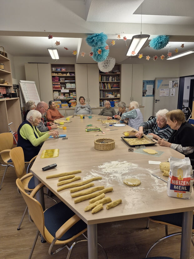 Hier im Haus starteten wir die kommende Adventszeit mit dem Backen unserer früheren Lieblingsplätzchen. Viele Bewohner erinnern sich noch an die Rezepte und alle Zutaten kamen auf die Einkaufsliste. Dann wurde kräftig gemischt und gerührt, ausgestochen, Teig probiert und verziert. Die Resultate ließen sich sehen und ein himmlischer Duft zog durchs ganze Haus. Noch am nächsten Tag erinnerte der verlockende Duft an ein gelungenes und schönes Miteinander, sodass wir beschlossen, wir brauchen noch viel mehr dieser süßen Leckereien, auf die unsere Bäckermeister sehr stolz sind.