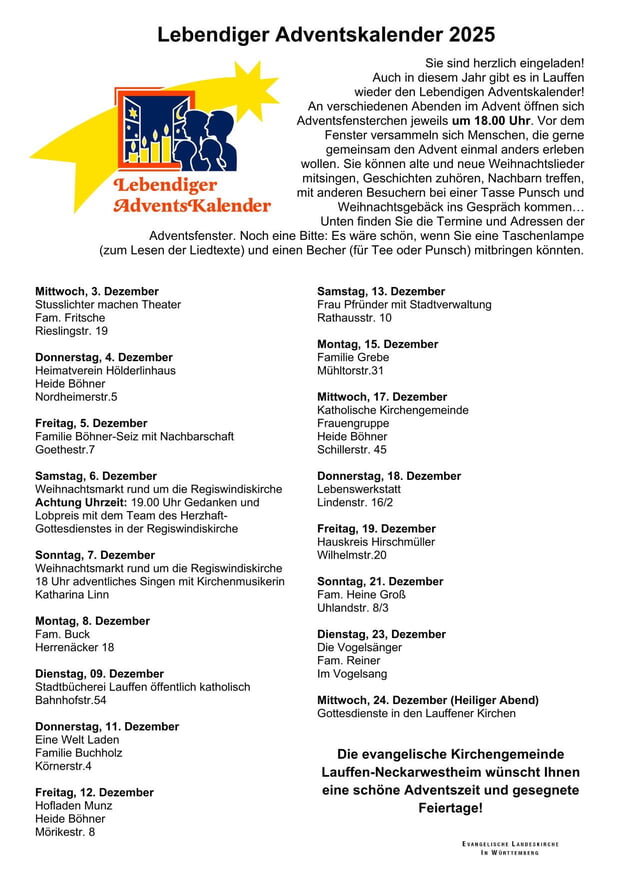 - 25. Weihnachtsmarkt rund um die Regiswindiskirche in Lauffen a.N.