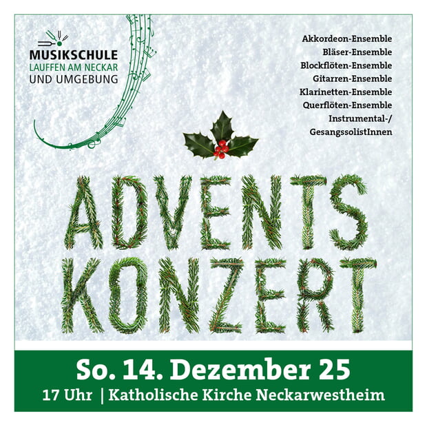 Zu unserem Adventskonzert in der katholischen Kirche St. Josef in Neckarwestheim (Weststraße 15) möchten wir Sie auch dieses Jahr wieder ganz herzlich einladen.