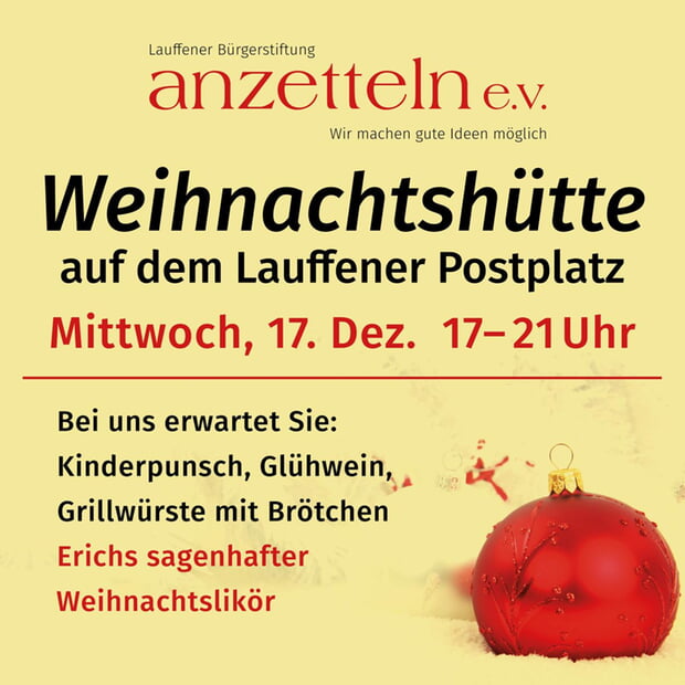 Lauffener Weihnachtshütte auf dem Postplatz mit anzetteln e.V.