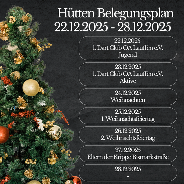 Bis zum 30. Dezember 2025 nutzen Vereine und Institutionen die vom Gewerbeverein bereit gestellte Hütte zur Bewirtung auf dem Postplatz. Auch in diesem Jahr wird die Idee des Gewerbevereins mit der Aufstellung der Weihnachtshütte umgesetzt. Sie soll den Postplatz beleben und auch zum Einkaufen in der Innenstadt einladen.