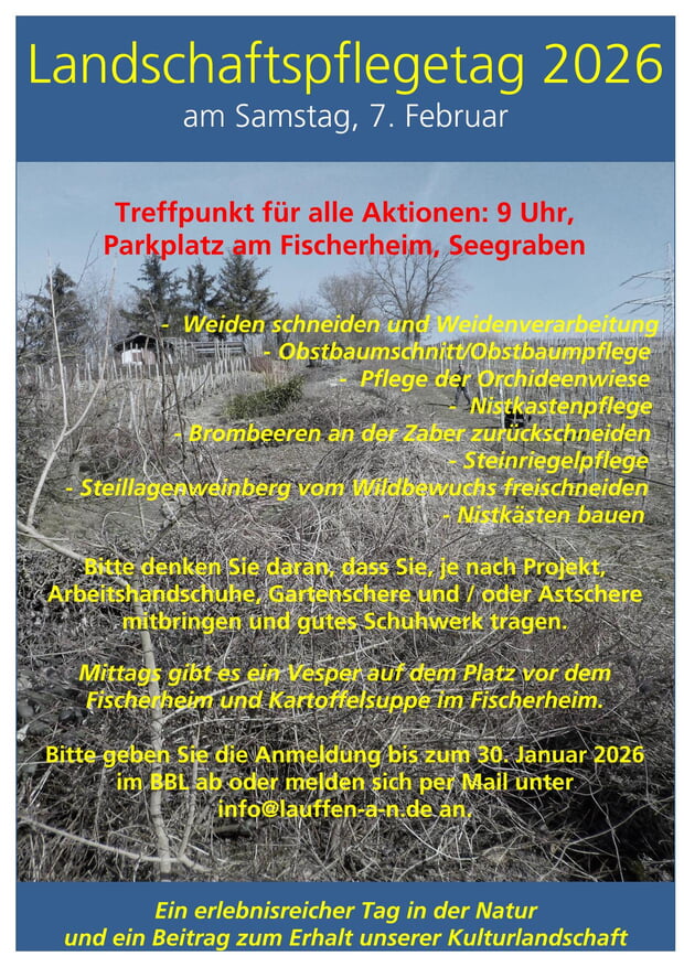 Anmeldung bis zum 30. Januar 2026 im BBL oder per Mail an info@lauffen-a-n.de.