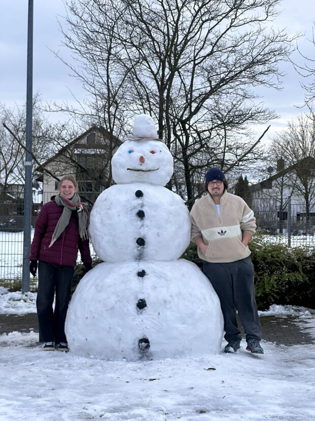 Schnee hatten wir Anfangs der Woche noch einmal. Dieser Super-Schneemann auf dem Foto von Frau Ugurlu wurde bereits am 26.1. gebaut. Nämlich von Finnja Schwarz und Cagatay Ugurlu in 3-stündiger Arbeit neben dem Schulsportgelände. Wirklich beeindruckend!