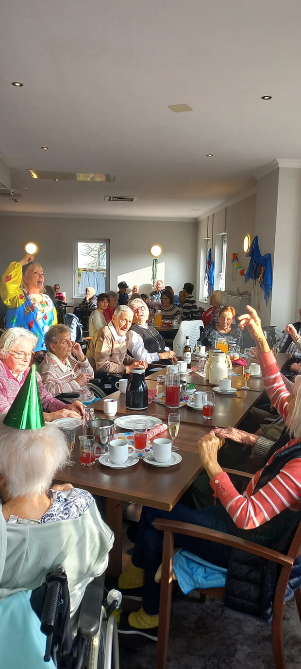 Die 5.Jahreszeit wurde hier im Haus durch den tosenden Einzug des Talheimer Karnevalvereins mit drei kräftig donnernden „Dahle Dallau“ begrüßt. Die Einrichtung strahlte den Gästen mit buntem Schmuck entgegen und das Hausrestaurant sowie das Foyer war gefüllt mit fröhlichen und gut gelaunten Menschen. Seit weit über 20 Jahren hält uns der Verein schon die Treue und beglückte uns in diesem Jahr wieder mit hervorragenden Leistungen seiner Aktivisten. Hautnah konnten wir dabei sein und der prunkvolle Einmarsch unserer Tänzerinnen wurde durch unseren Musikus Herrn Gottwald großartig begleitet und die Stimmung stieg. Zu Beginn brachte uns das Tanzmariechen Laura durch ihre Akrobatik und Leichtigkeit bei ihren Tanzbewegungen zum Staunen und Applaudieren. Weiter ging es mit der Kükengarde, die uns als die Kleinsten im Alter von 5 bis 10 Jahren mit ihrem Können und Wuseln verzauberte. Ein weiterer Programmpunkt war die Ordensverleihung an vier besondere Mitglieder unserer Gemeinschaft hier. Celine, das zweite Tanzmariechen begeisterte danach unser Publikum und wir erinnerten uns an die Beweglichkeit, die auch einmal in uns steckte… Danach der tobende Einmarsch der Roten Funken, der die Stimmung nochmals steigerte. Eine kleine Schunkelrunde ließ uns aufatmen und dem Können von Herrn Gottwald lauschen. Das diesjährige Prinzenpaar präsentierte nun stolz ihre Prinzengarde, wobei man auch hier die jahrelange Tanzerfahrung bestaunen konnte. Zum Finale zeigten sich nochmals alle mit einer Polonäse durch unsere Reihen und marschierten mit tobendem Applaus aus. Ein gelungener Nachmittag, der in glückliche Gesichter schauen und den einen oder anderen mit einem Gläschen Sekt anstoßen ließ.