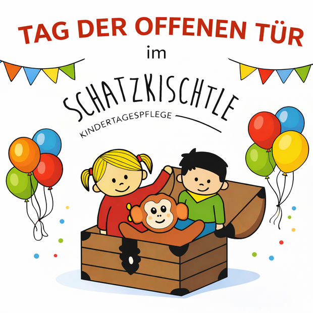 Alle interessierten Familien und werdenden Eltern laden wir herzlich zu unserem Tag der offenen Tür am Samstag, 21.02.2026, von 9:00 Uhr bis 13:00 Uhr in unser Schatzkischtle (Mörikestraße 4) ein.