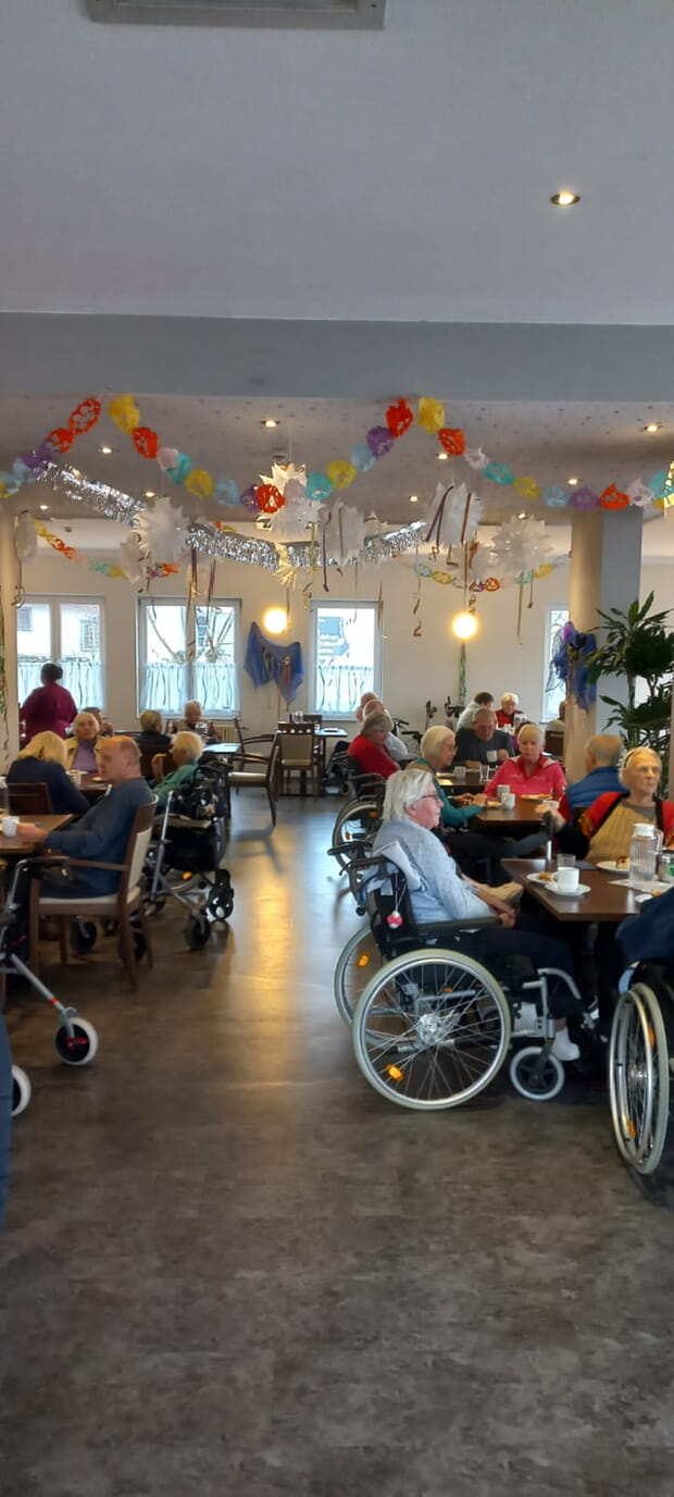 Den Februar hießen wir mit einem gemeinsamen Waffelfest herzlich willkommen und feierten den kalten Wintertag in gemütlicher Atmosphäre und bei lockenden Gerüchen. Die zogen auch diejenigen ins Hausrestaurant, die einen gemütlichen Nachmittag andersweitig verplant hatten. Unsere Waffeleisen liefen heiß und Frau Heitmann war nach der mindestens 10. Waffel „eingebacken“. Die Nachfrage war riesig, denn eine war keine. Frau Schmidt begleitete uns treu mit ihrer Quetsche und hatte wieder wundervolle Musik mitgebracht, zu der gesungen und geschunkelt wurde. Gute Laune und ein schönes Miteinander.