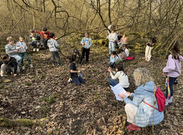 Das milde Frühlingswetter lädt ein, sich nach dem langen Winter draußen aufzuhalten. Ein Besuch im nahe liegenden Kaywald ist immer lohnend. Am 9.3.26 gingen die Kinder der drei AGs Labor, Computer und Kreativ gemeinsam in den Kaywald, um die aktuell blühenden Szilla zu entdecken und ein Waldmärchen zu hören.