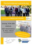 Diese Gemeindeversammlung ist eine gute Möglichkeit, Ihre Ideen und Gedanken zu äußern und sich so aktiv in die weitere Entwicklung unserer Gemeinde einzubringen. Ihre Erfahrungen, Ihr Engagement bei uns und Ihre Meinung sind dabei unverzichtbar, um dem Kirchengemeinderat eine breite Basis für einen fundierten Vorschlag an das Dekanat zu ermöglichen.
