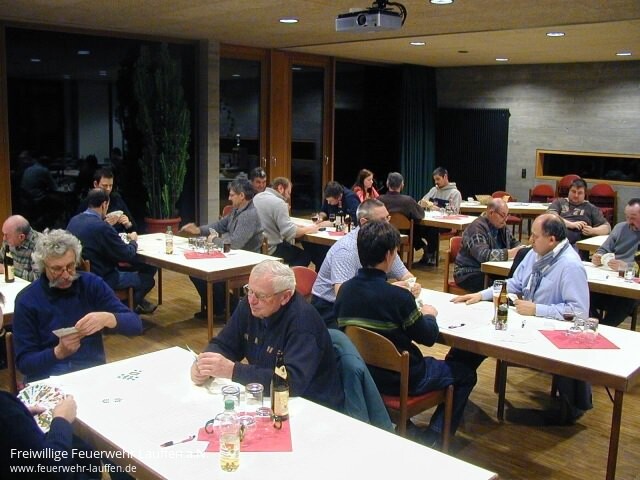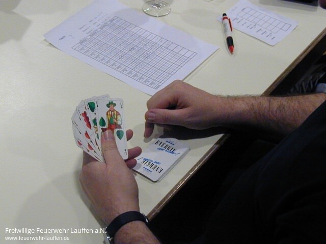 Pünktlich um 19 Uhr ging es nach der Spielauslosung im Feuerwehrhaus los. In Dreiergruppen wurde um den Turniersieg gespielt. Neben ein paar alten Binokelhasen, wie z. b. dem mit 86 Lebensjahren älteste Spieler Stefan Eberhardt, versuchten auch zwei Anfänger ihr Glück. Diese hatten erst zu Weihnachten, extra für dieses Turnier, mit dem Binokelspielen begonnen. Erfreulich war zudem noch, dass im Spielerfeld zwei Binokelspielerinnen dabei waren.