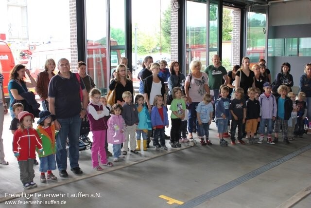 Wie groß das Interesse an der Feuerwehr ist, zeigte wieder einmal mehr der Aktionstag des städtischen Kindergarten Brombeerweg bei der Feuerwehr Lauffen. Rund 40 Kindergartenkinder haben sich mit einem Elternteil pünktlich um 14 Uhr auf dem Feuerwehrhof zu dem von der Elternbeirätin Stephanie Schürlein und der Erzieherin Annette Schaaf organisierten Aktionstag eingefunden.