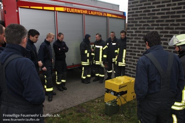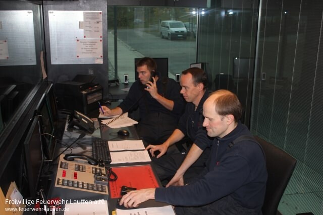 Mit einem mobilen Stromgenerator des Rüstwagen erfolgte im Lauffener Führungshaus eine Notstromversorgung zur Aufrechterhaltung des Führungsraumes. Im Rahmen der Übung wurden dann verschiedene Einsatzaufträge fiktiv abgearbeitet, welche bei solchen Schadenslagen nicht über Funk sondern über Fax eingehen. Von der augerückten Einsatzfahrzeugen konnte in diesem Zusammenhang auch der Funktionsradius des Ausweichfunkkanals auf der Lauffener Gemarkung getestet werden.