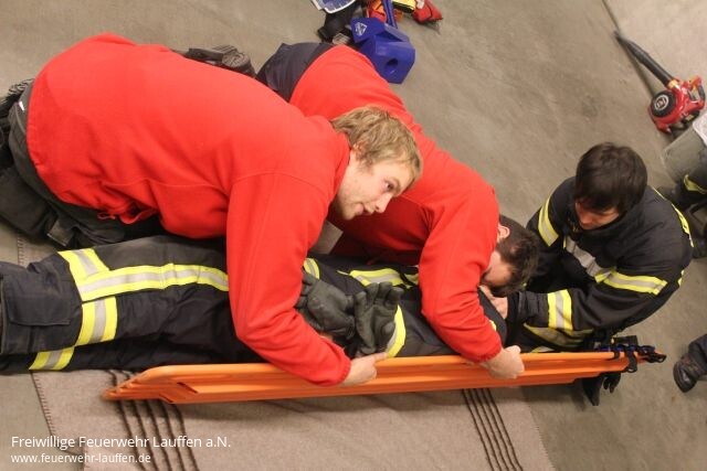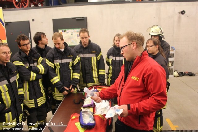Da im Lauffener Feuerwehrhaus, wie schon berichtet, vorübergehend ein Rettungswagen des ASB untergebracht ist, hat man jetzt im November diese Situation ausgenutzt und mit den Kollegen des ASB den Gesamtfeuerwehrdienst durchgeführt und die Vorgehensweisen und die Maßnahmen des Rettungsdienstes etwas näher beleuchtet.
