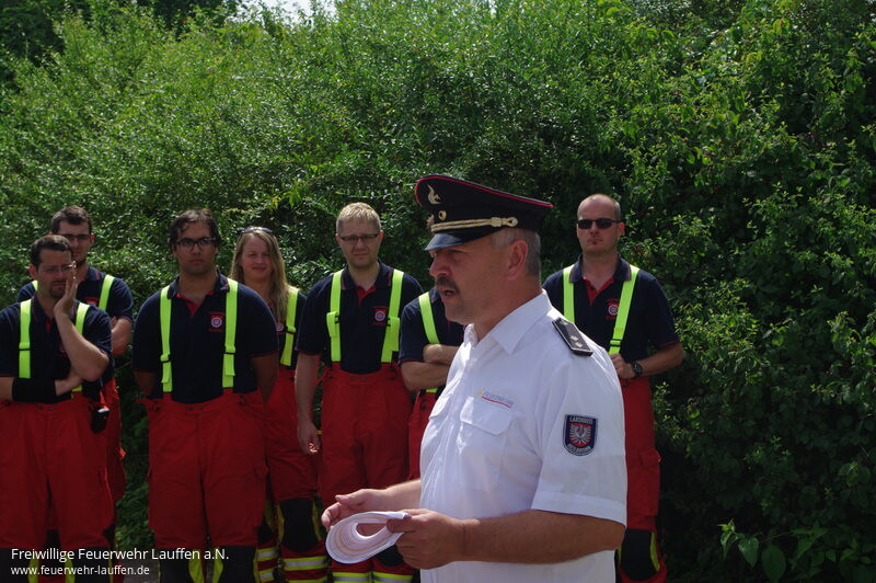 Neben dem Landkreis Heilbronn treten an diesem Wochenende auch Gruppen aus dem Hohenlohekreis, dem Enzkreis und dem Landkreis Ludwigsburg zu den drei verschiedenen Leistungsabzeichen Bronze, Silber und Gold an. Doch erst wer Bronze erreicht hat, darf im kommenden Jahr für das Silber und dann für Gold antreten. Denn die Leistungsabzeichen bauen aufeinander auf. Ein halbes Jahr vorher werde schon wöchentlich geübt. Jeder muss jede Funktion übernehmen, denn „ob man in der als Melder, Angriffs- oder Wassertrupp eingesetzt wird, wird erst vor der Prüfung ausgelost. Doch das Training schweißt die Truppe zusammen“, weiß Vogt. „Und dadurch klappt es auch im Einsatz“, ergänzt Kreisbrandmeister Vogel.