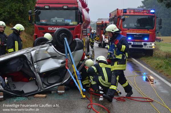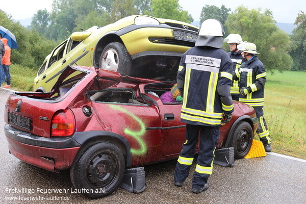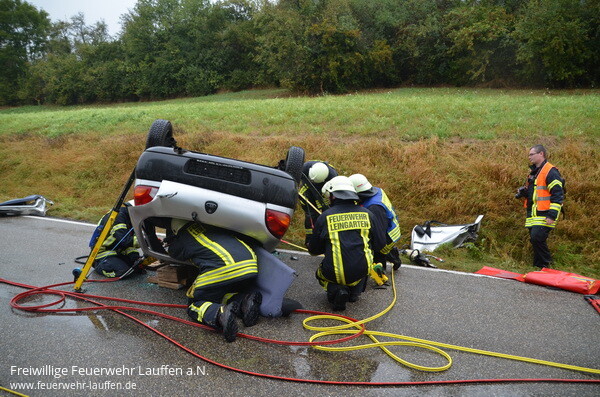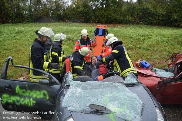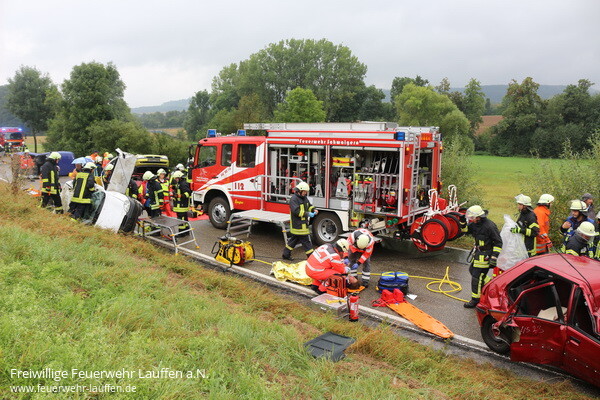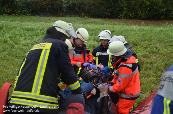 Die Autos sind zum Teil ineinander verkeilt, liegen auf dem Dach oder sind den Hang zur Langwiese hinabgestürzt. Auch Hilfeschreie eingeklemmter Personen sind zu hören. Acht Minuten, nachdem von einem hinzukommenden Verkehrsteilnehmer der Notruf 112 abgesetzt worden ist, sind die ersten Fahrzeuge aus Leingarten zur Stelle. Einsatzleiter Jochen Reske erkundet die Lage. Rasch erkennt er das Ausmaß des Geschehens, weist die Feuerwehrleute ein und fordert weitere Einsatzkräfte benachbarter Hilfsorganisationen sowie Rettungswagen an. Kurz danach treffen die Feuerwehren aus Schwaigern mit den Teilorten Stetten und Massenbach sowie aus Lauffen ein.