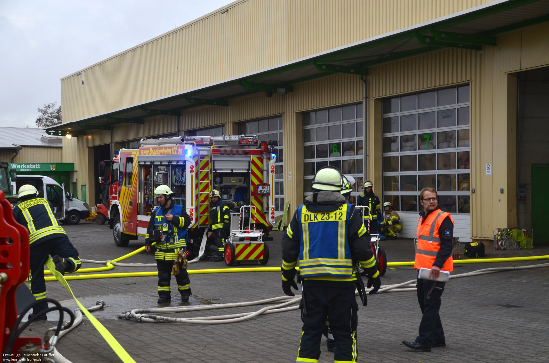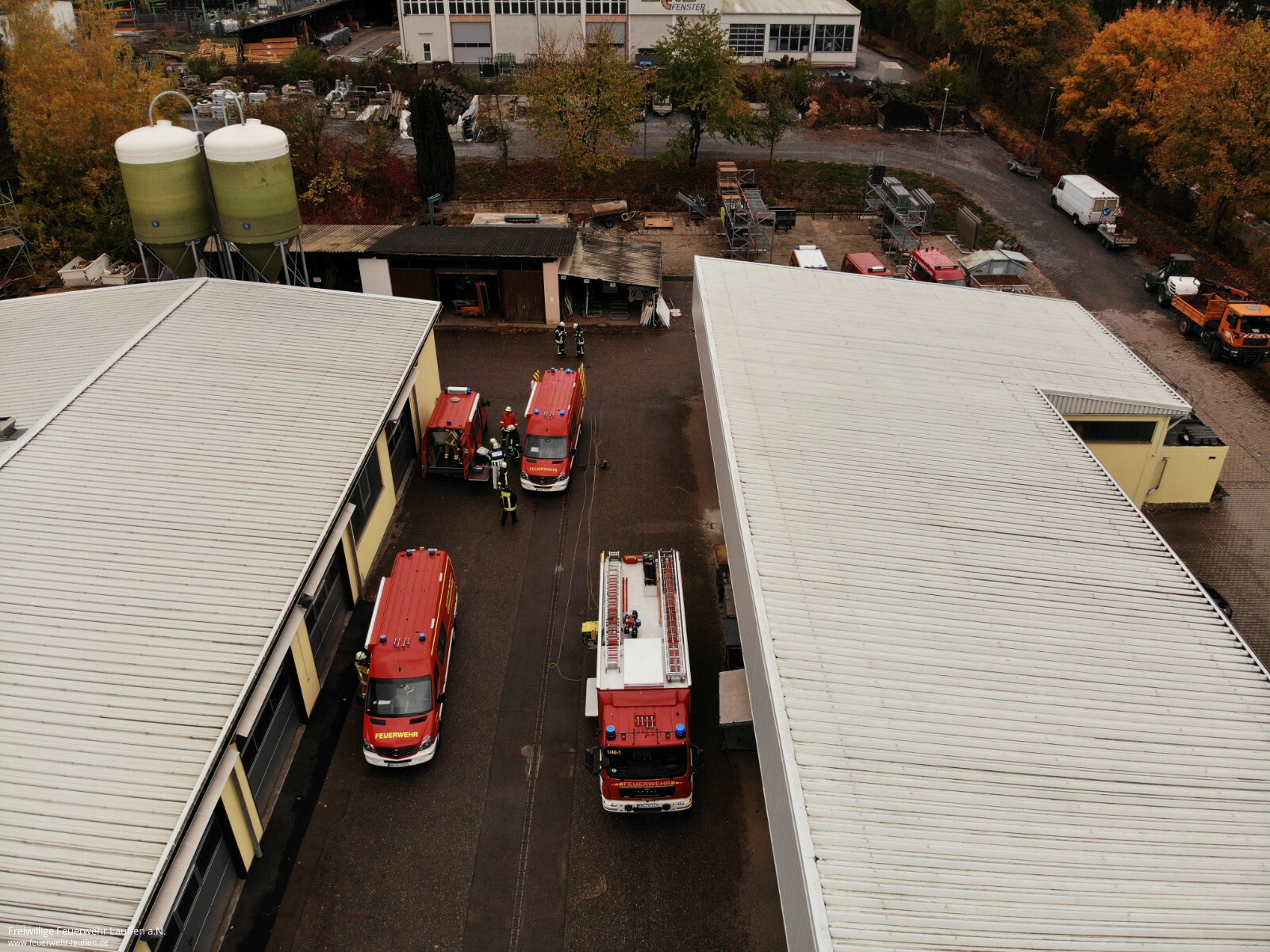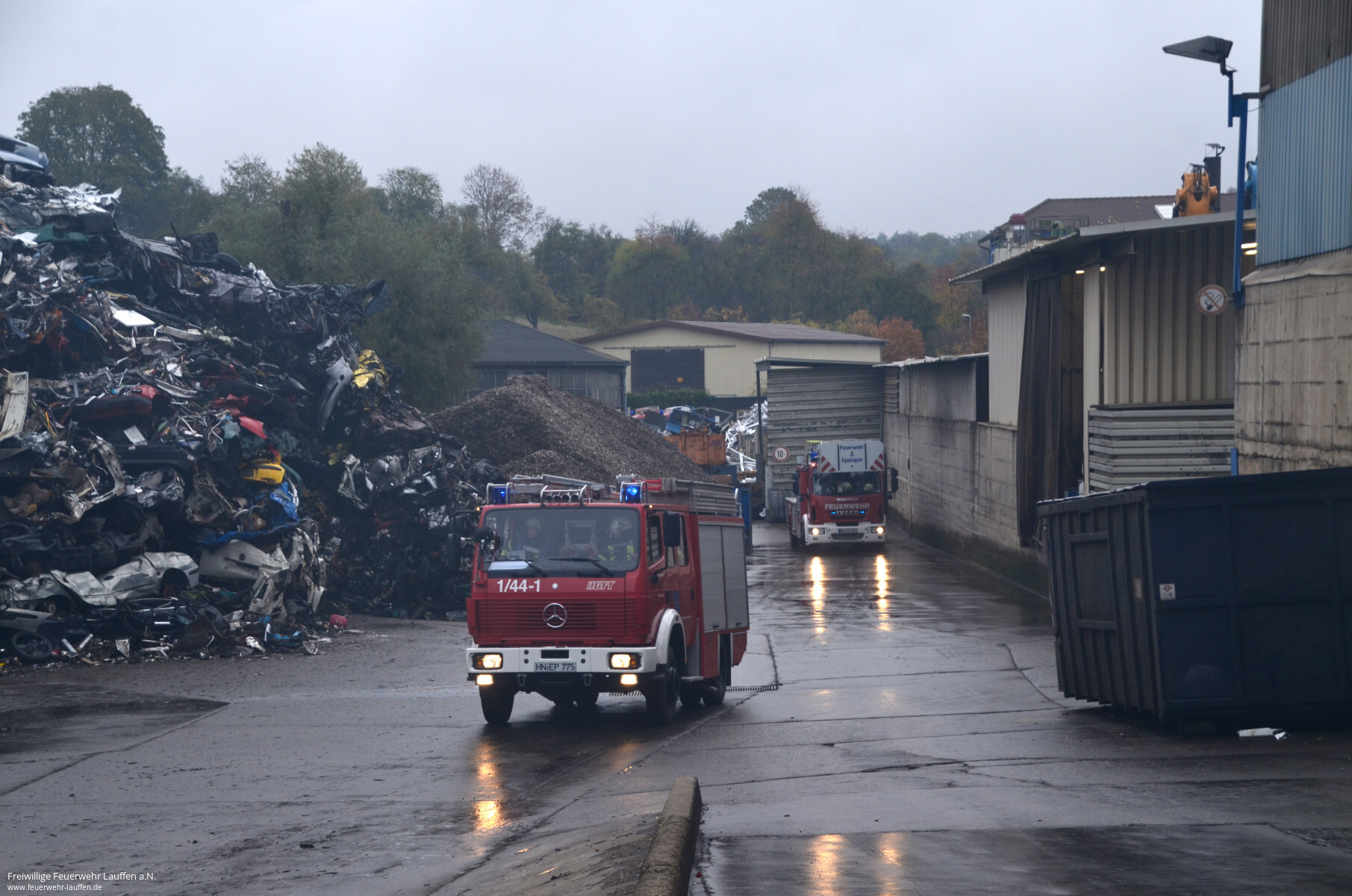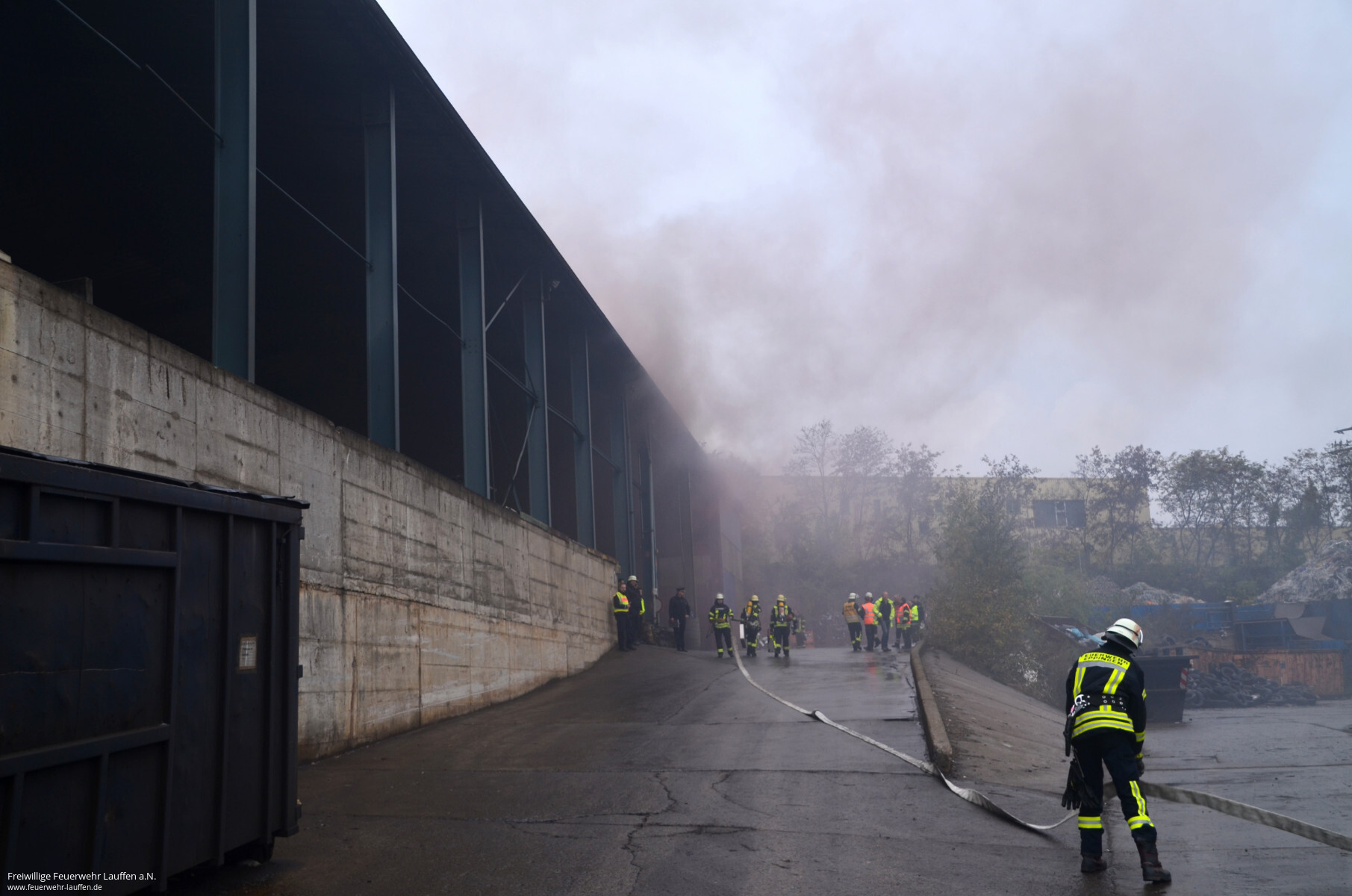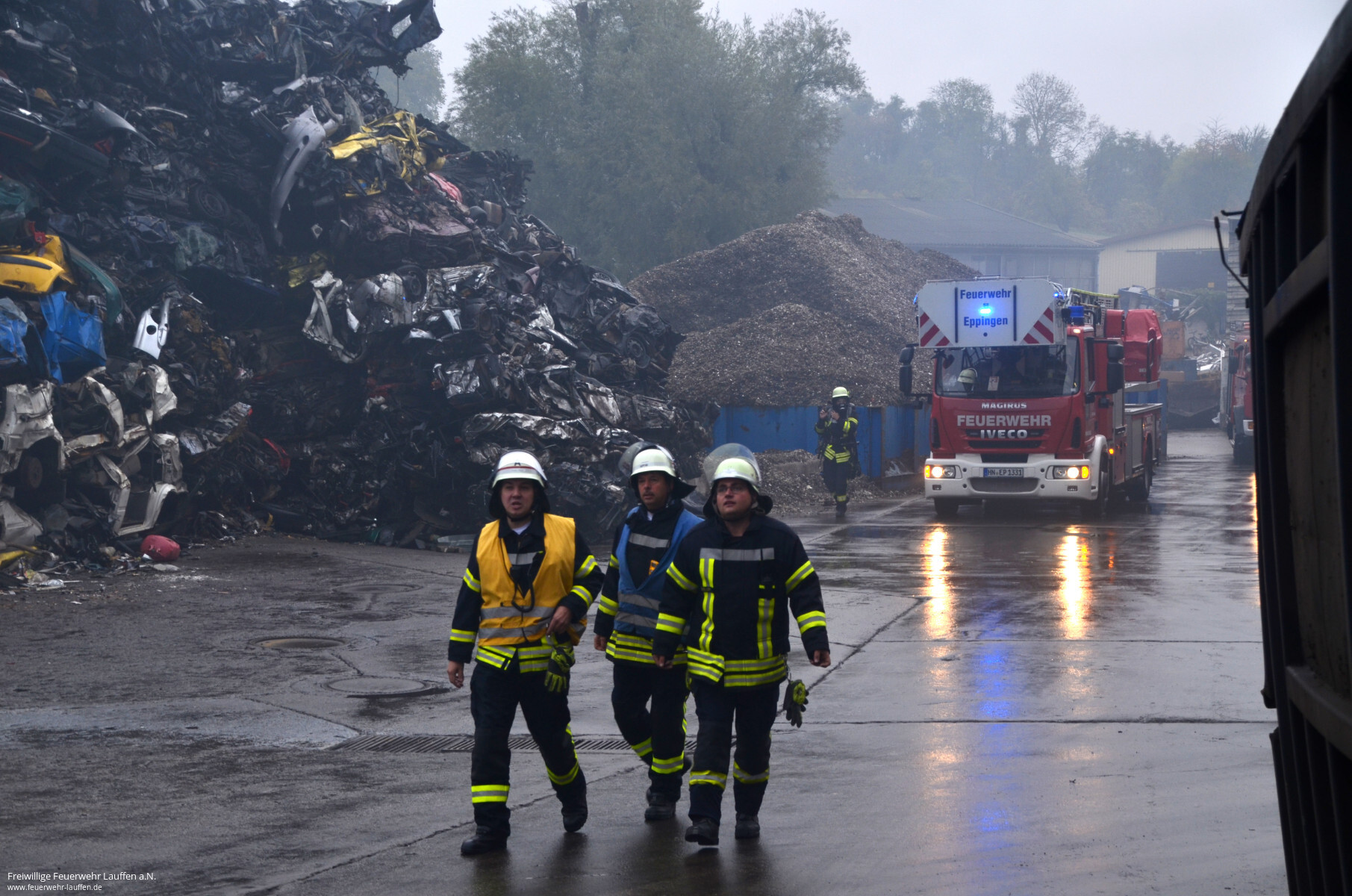 Die interne Löschgruppe der Fa. ALBA leitet erste Maßnahmen ein, bekommt das Feuer aber nicht in Griff. Daraufhin wird über 112 die Feuerwehr alarmiert.
