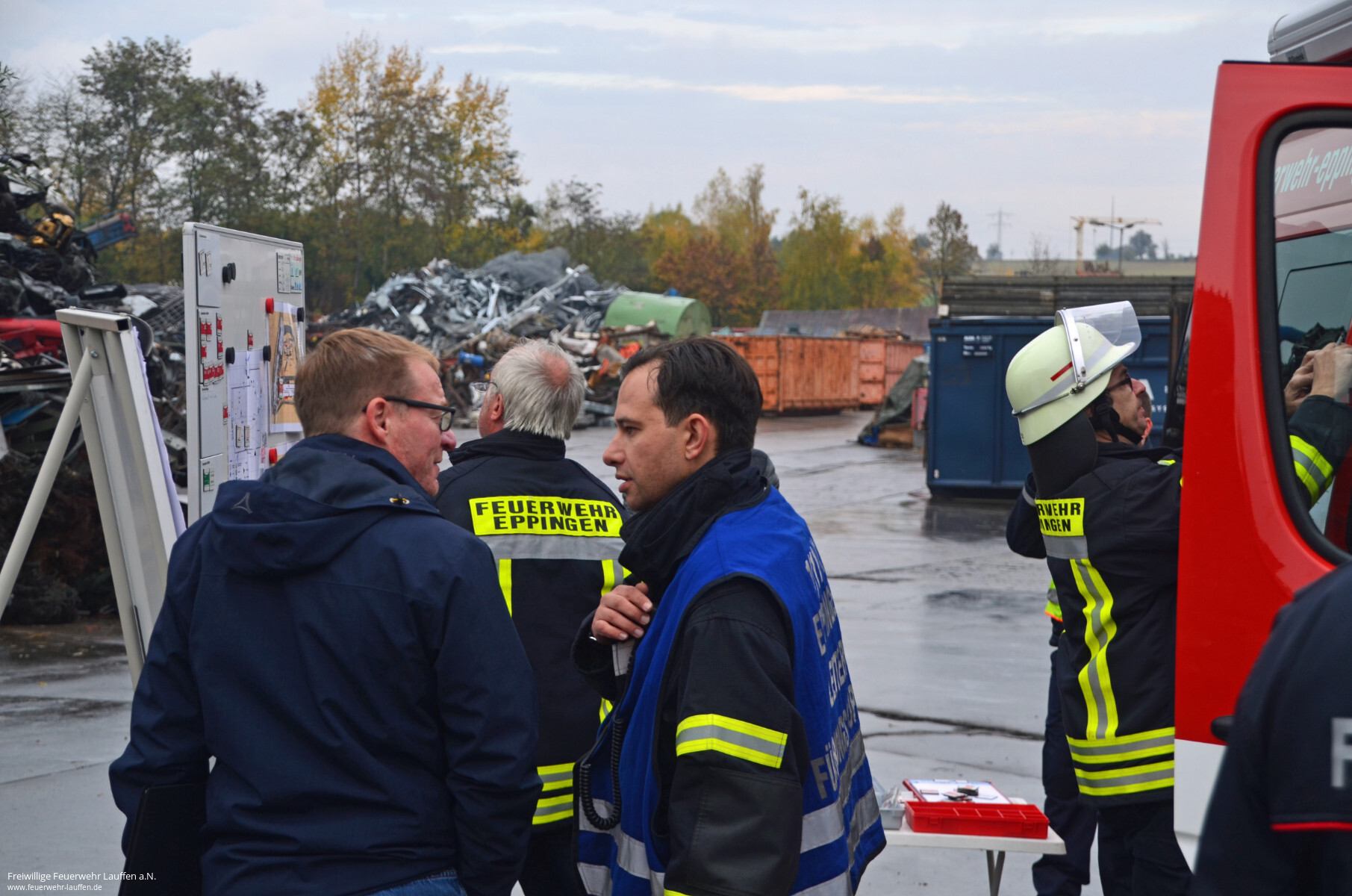 Gestern fand die Jahresübung des Führungsstabs des Landkreises Heilbronn bei der Firma ALBA Electronic Recycling GmbH in Eppingen statt. Neben dem Führungsstab und dem Gefahrgut-Messzug des Landkreises waren die Feuerwehren Eppingen, Bad Rappenau, Brackenheim, Lauffen a.N., Leingarten und Neckarsulm in die Übung eingebunden.