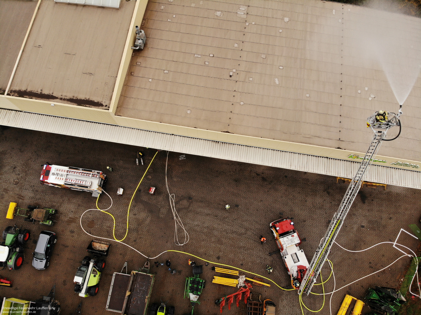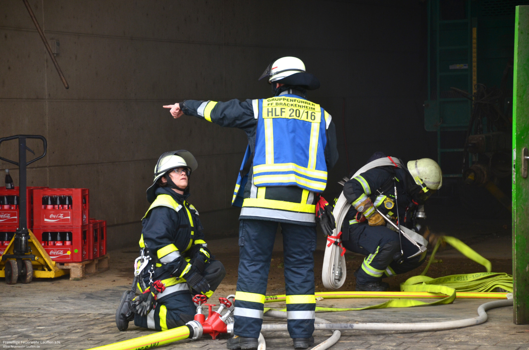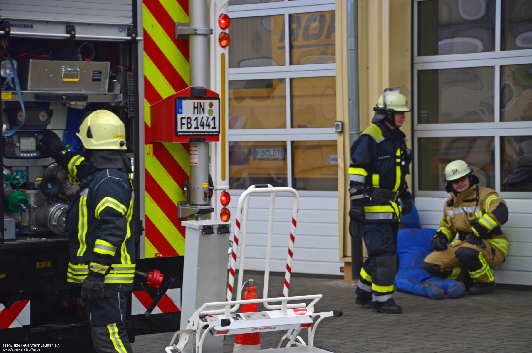 Angenommen wurde ein Brand auf dem Betriebsgelände der Fa. ALBA, der sich auf eine benachbarte Landmaschinenwerkstatt ausbreitete. Neben der Brandbekämpfung wurden auch Maßnahmen durch das Auftreten der Rauchwolke und eine Wasserverschmutzung geübt.