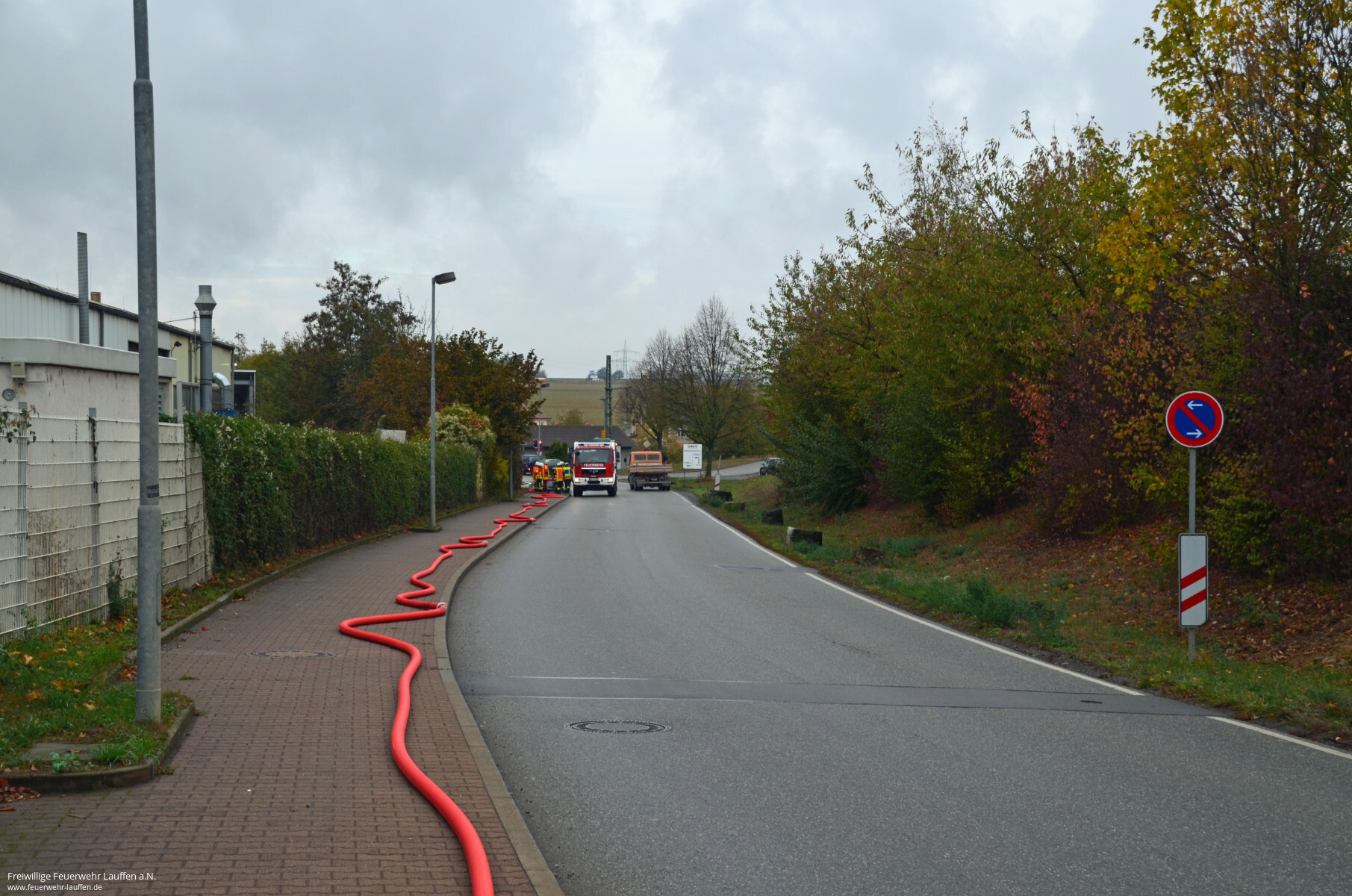 Kurz vor Eintreffen des GAS 4-Zuges war das Feuer auf eine benachbarte Werkstatthalle des Kraichgau Raiffeisen Zentrums übergeschlagen. Der GAS 4-Zug wird daraufhin mit der dortigen Brandbekämpfung beauftragt. Der Wasserförderzug stellt ein unabhängige Wasserversorgung von der Elsenz zu den beiden Brandabschnitten her. Auf Grund des derzeit bestehenden Wasserentnahmeverbotes aus öffentlichen Gewässern wurde das Wasser jedoch aus einem Hydrant entnommen.