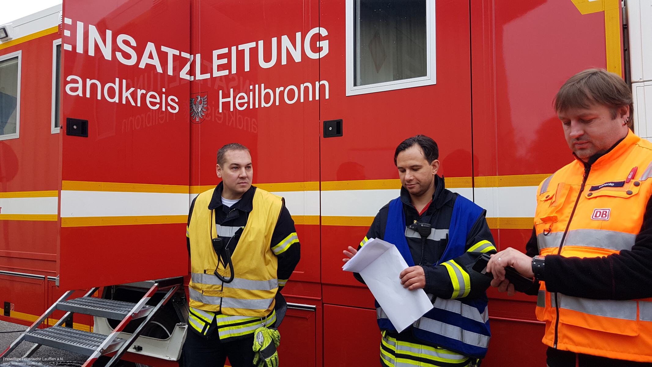 Es handelte sich um ein interessante, aber auch anspruchsvolle Übung. Ein Ziel war u.a. der Übergang von der lokalen Einsatzleitung durch die Feuerwehr Eppingen aus deren ELW 1 (Einsatzleitwagen)auf die Einsatzleitung durch den Führungsstab des Landkreises im ELW 2 des Landkreises.