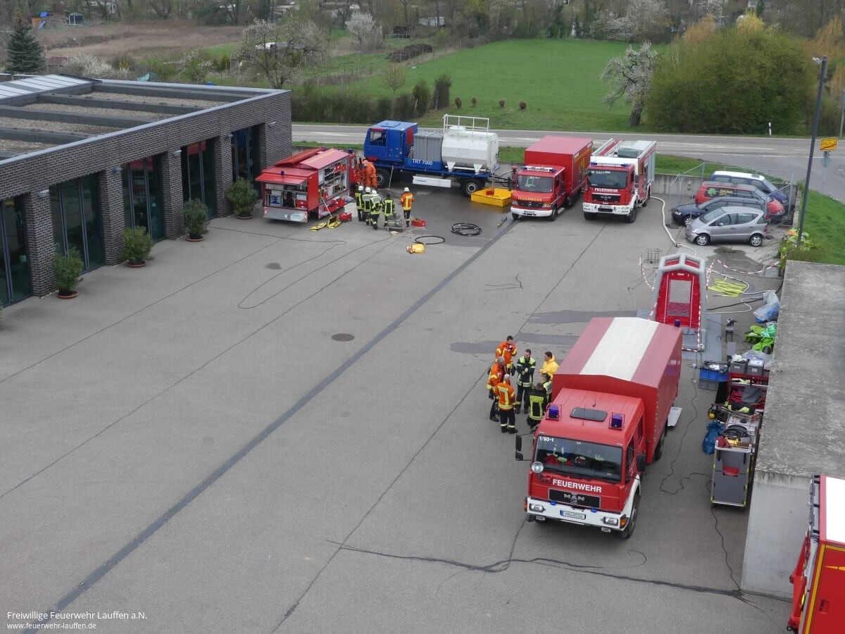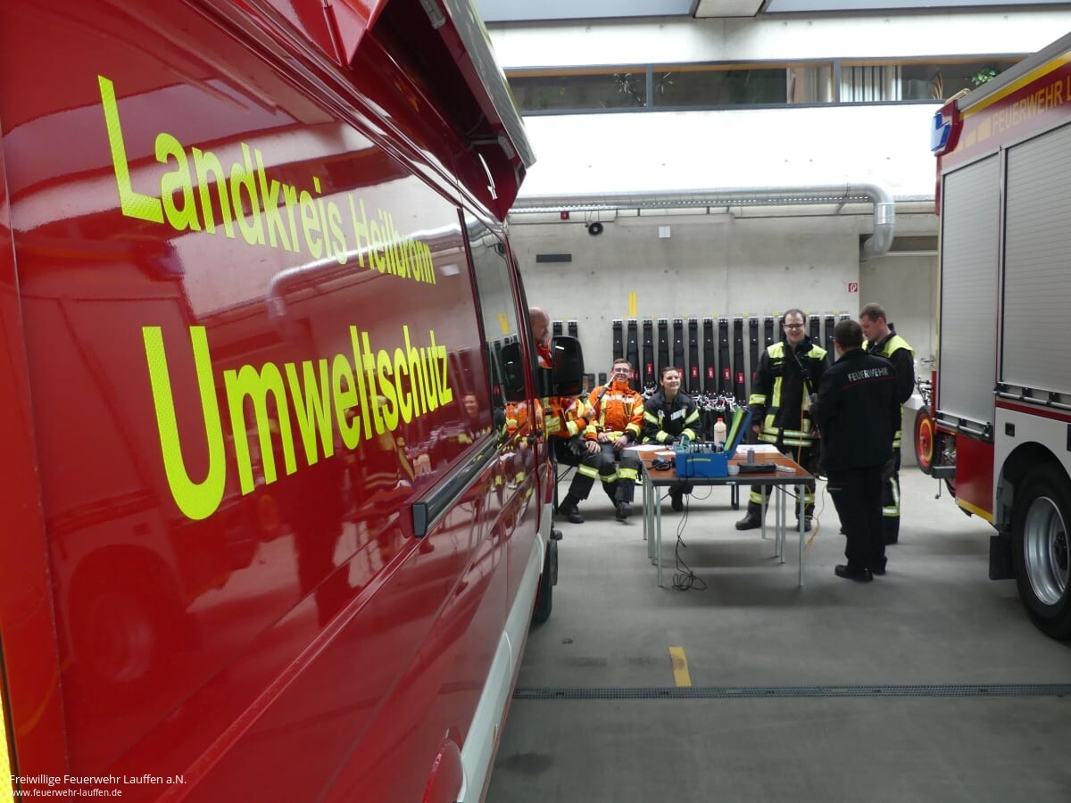 Nach zwei Tagen Dauereinsatz verschiedener Gefahrstoffgruppen des Landkreises, welche durch eine Gewässerverunreinigung der Schozach mit einem einhergehenden Fisch- und Tiersterben einhergegangen ist, haben sich die Gefahrstoffgruppen des Landkreis Heilbronn am 06.04. trotzdem zu einem gemeinsamen Übungstag im Lauffener Feuerwehrhaus getroffen.