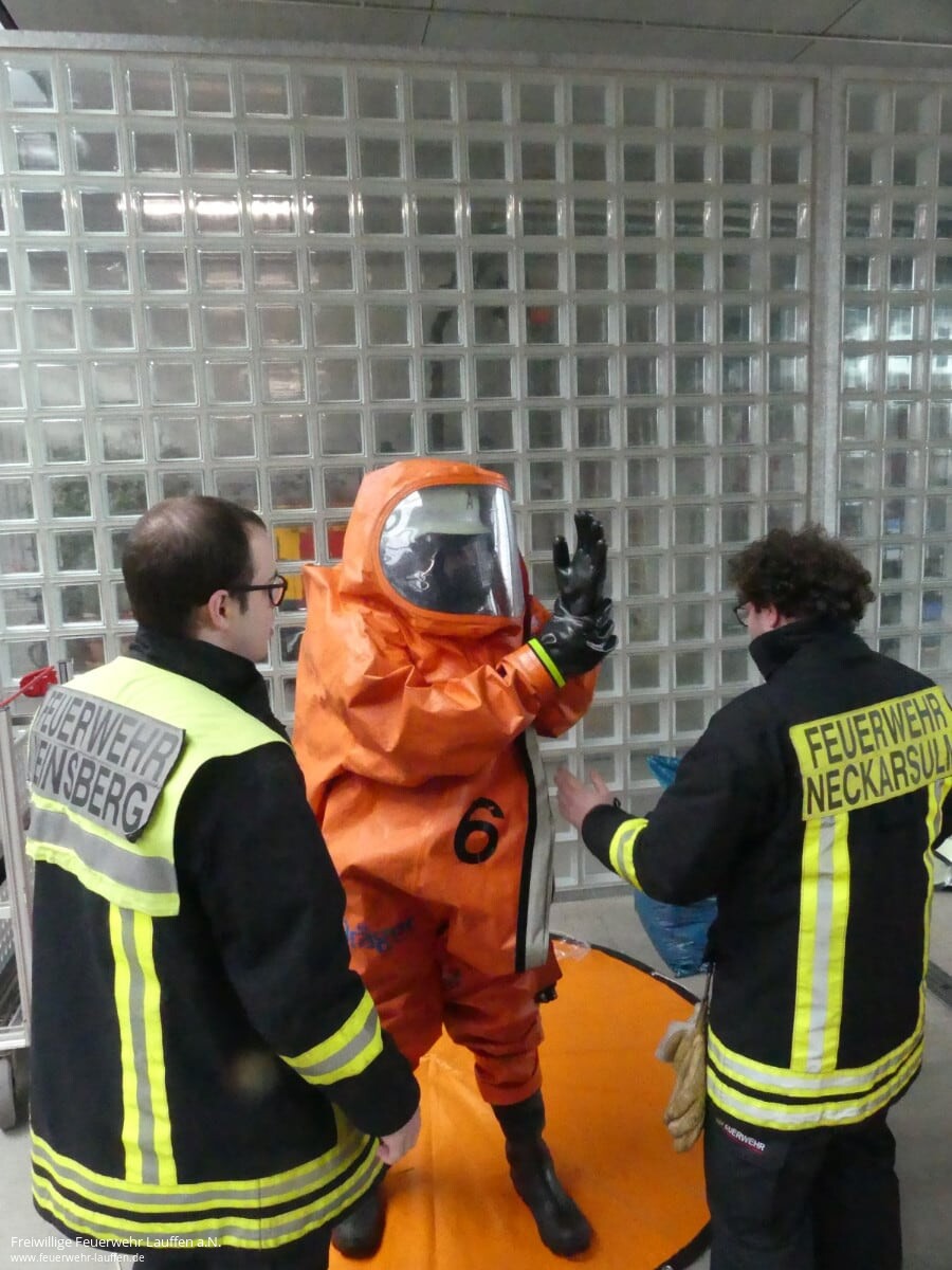 Mit Unterstützung der Fachberatern Chemie des Landkreis Heilbronn, Sigrid Aßfalg und Dr. Stefan Sendelbach, haben sich die Gefahrstoffgruppen aus Bad Rappenau, Lauffen a.N., Neckarsulm und Weinsberg an verschiedenen Stationen weitergebildet.