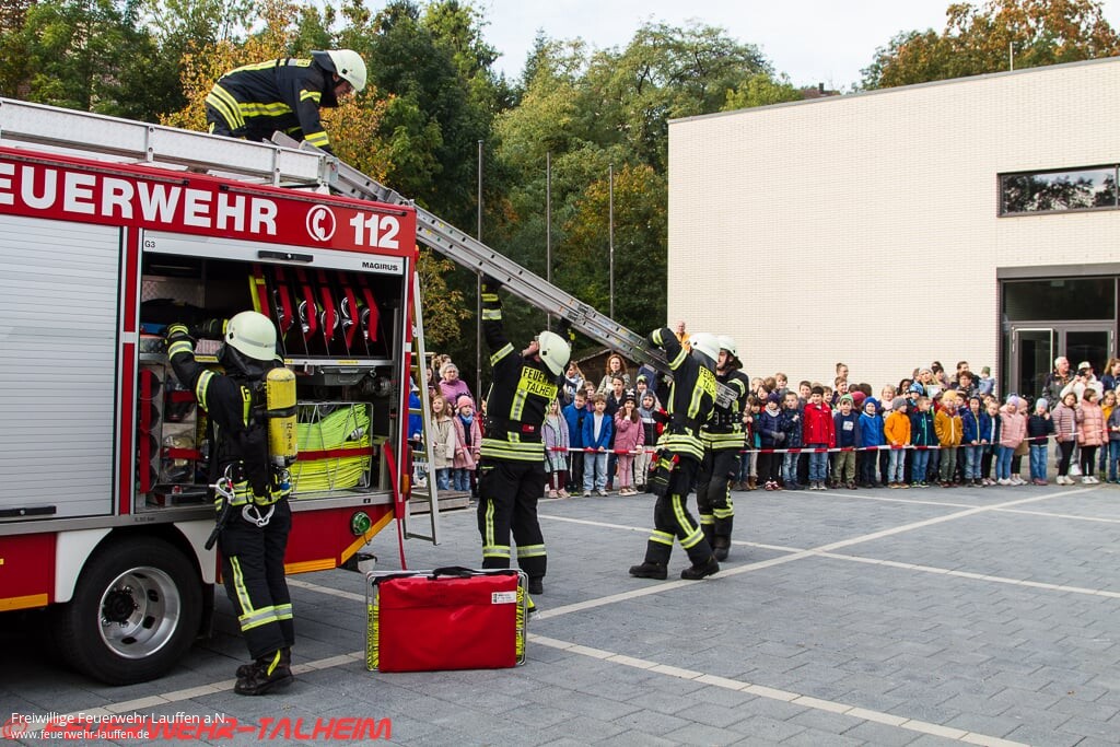 Die Feuerwehr Talheim bedankt sich bei der Feuerwehr Lauffen am Neckar, dem Deutschen Roten Kreuz, den Schülerinnen und Schülern, allen Lehrkräften, dem Hausmeister der Grundschule, dem Bürgermeister Rainer Gräßle und allen, die die Übung verfolgt haben.