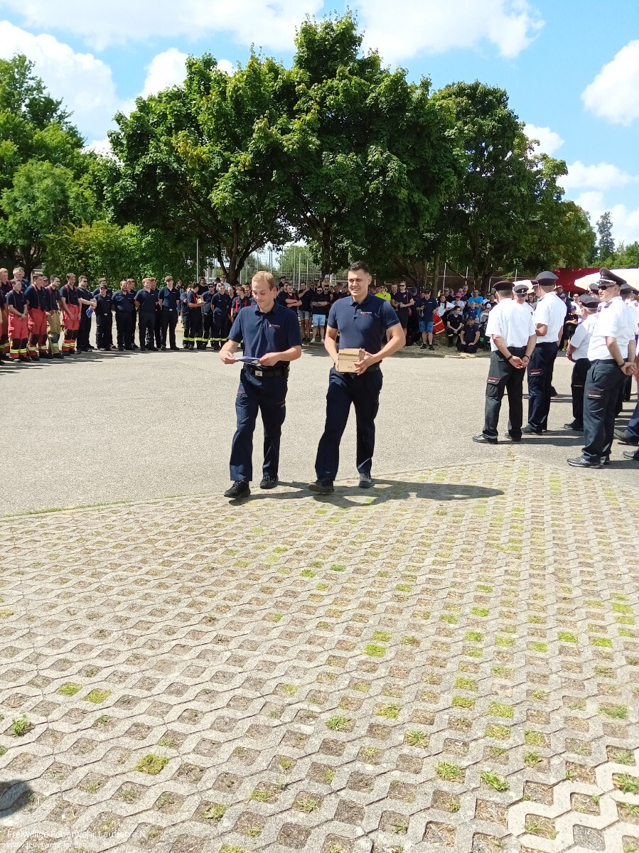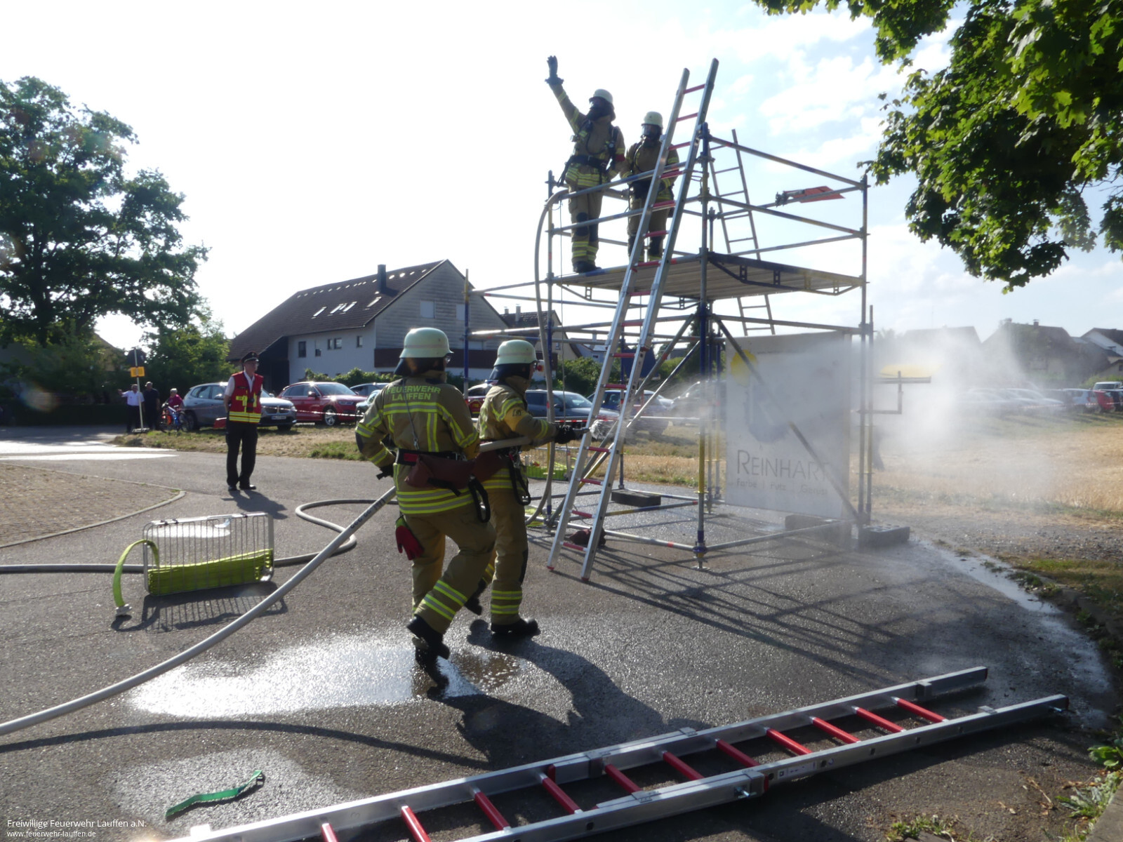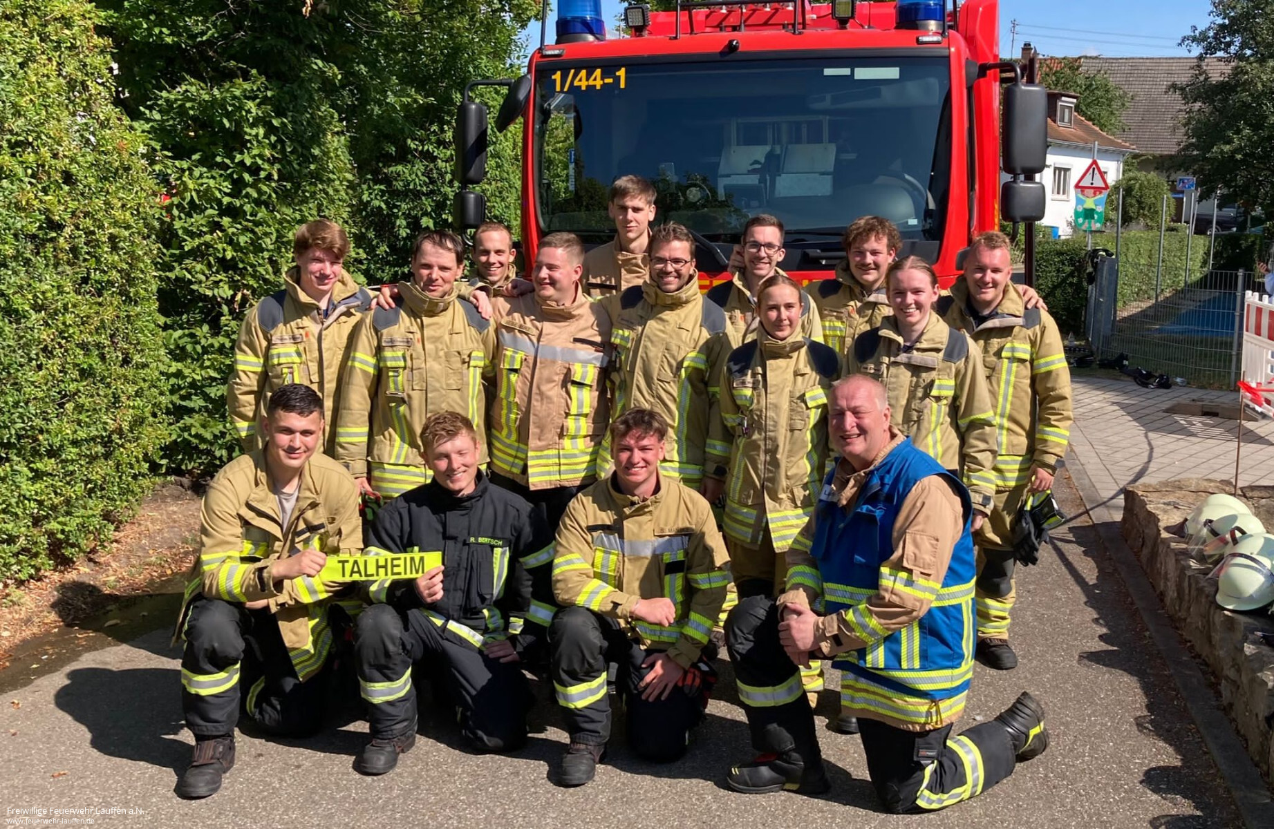 Bei hochsommerlichen Temperaturen sind wir in Oedheim-Degmarn zur Abnahme der Prüfung angetreten und es hat sich bewahrheitet: Vor dem Lohn kommt der Schweiß. Besonders unsere Atemschutzträger bekamen die Temperaturen mit voller Wucht zu spüren. Nach tadelloser Leistung beider Gruppen konnten dann auch unsere zwei Jüngsten, stellvertretend für die ganze Gruppe, die begehrten Abzeichen in Silber voller Stolz entgegennehmen. Abends bot sich dann das Talheimer Gassenfest zum Feiern an. Nachdem der Rathausbrunnen gut gefüllt war, wurde auch die Tradition erfüllt und unser Gruppenführer durfte mehr oder weniger freiwillig zum Dank darin baden.