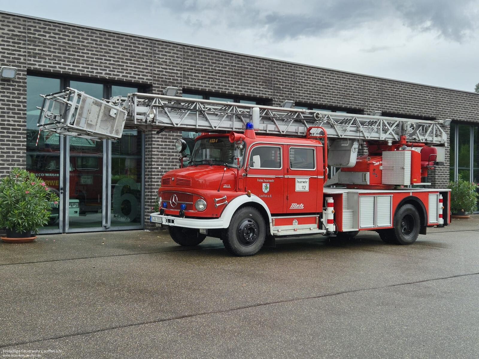 Die Drehleiter ist funktionsfähig und besitzt alle entsprechenden Prüfungen, der Besitzer führt damit unter anderem Hochzeitsfahrten durch.