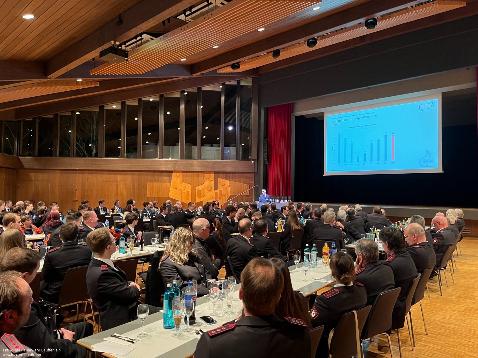 Am 6. Februar fand die Jahreshauptversammlung der FF Lauffen a.N. in der gut besetzten Stadthalle statt. Neben den Feuerwehrangehörigen folgten auch zahlreiche Gäste der Veranstaltung.