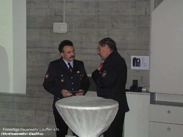 In seiner Laudatio auf den Jubilar, blickte Kommandant Heiner Schiefer auf die rund 31 jährige Zugehörigkeit Krafts zur Lauffener Wehr zurück, in welcher dieser seit nunmehr elf Jahren auch als stellvertretender Kommandant tätig ist. In diesen elf Jahren Feuerwehrleitung, war Gerhard Kraft unter anderem an der Beschaffung von vier neuen Feuerwehrfahrzeugen und dem Bau des neuen Feuerwehrhaus in der Raiffeisenstraße beteiligt.