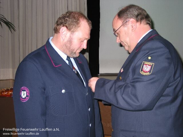Für 25 Jahre Feuerwehrzugehörigkeit wurde Kommandant Heiner Schiefer von Kreisbrandmeister Vogel das Feuerwehrehrenabzeichen in Silber verliehen.
