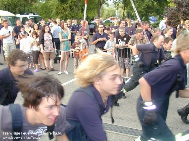 Auch taktische Umstellungen in der Pause brachten im zweiten Durchgang leider nicht die gewünschte Zeitverbesserung, so dass man sich am Schluss mit einem vorletzten Platz zufrieden geben musste. Da für die Lauffener der Faktor Spaß und die Kameradschaft bei dieser Teilnahme gemäß dem olympischen Motto "dabei sein ist alles" im Vordergrund stand, schmerzte dieses Ergebnis auch nicht sonderlich. Dem Sieger dieses Löschfahrzeug-Wettziehen, der Mannschaft aus Bietigheim gratulieren wir auf diesem Weg noch einmal zu der hervorragenden Zeit.