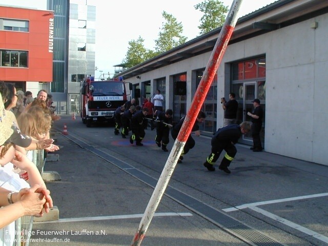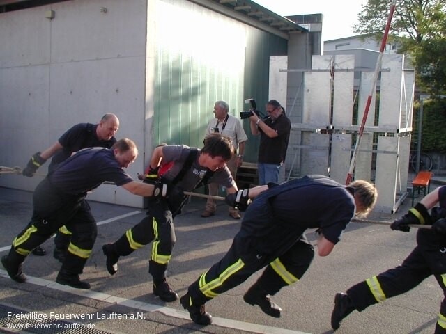 Wie anstrengend es ist, ein rund 13,5 t schweres Löschfahrzeug bei Sonnenschein und einer Außentemperatur von rund 27°C zu ziehen, konnten 10 Kameraden der Feuerwehr Lauffen am 25.05.2009 erleben.
