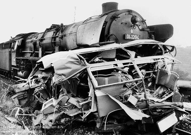 Menschliches Versagen und unsagbares Leid: Die schwere Dampflok bohrt sich in den Bus, schleift ihn mit, zerquetscht ihn regelrecht. Dass aus dem Wrack 26 Frauen, Männer, Kinder lebend gerettet werden können, grenzt an ein Wunder. „Den Rettungskräften wurde am 20. Juni 1959 Übermenschliches abverlangt“, dankt Waldenberger Polizei, DRK und Feuerwehr.
