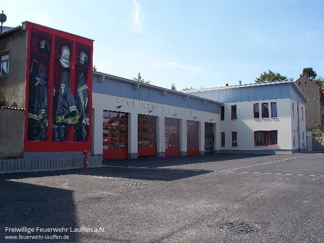 Direkt an der Altenburger Strasse unweit der alten Unterkunft ist ein modernes Feuerwehrhaus entstanden, dass den Anforderungen einer gut ausgestatteten Stützpunktfeuerwehr gerecht wird. Ein besonderer Blickfang ist das Wandbild von Graffiti-Fassaden-Designer Tino Schneider.