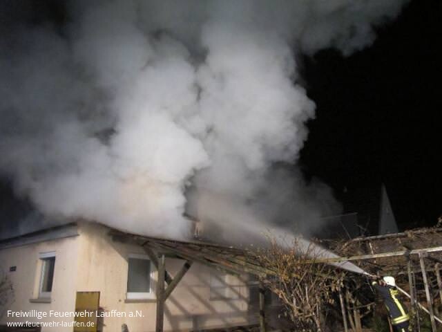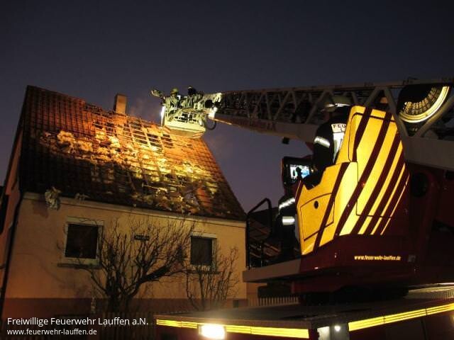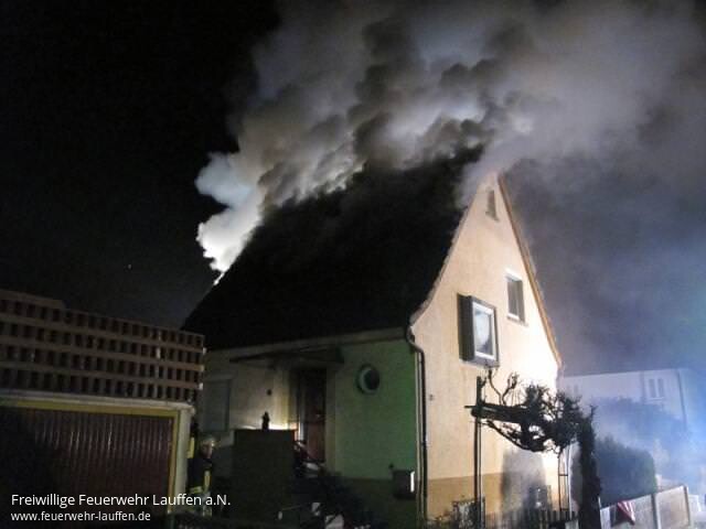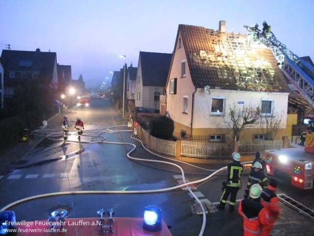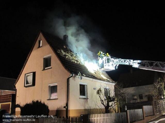 Als im Zuge der weiteren Erkundung dann festgestellt wurde, dass auch der Dachboden des Hauses von dem Brand betroffen war, wurde die Feuerwehr Lauffen mit Drehleiter und Löschgruppenfahrzeug zur Unterstützung angefordert.