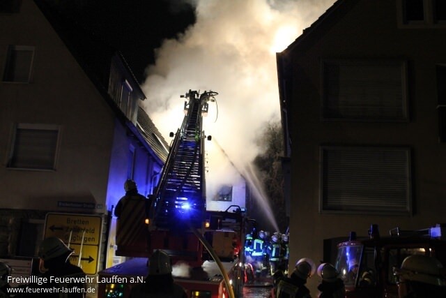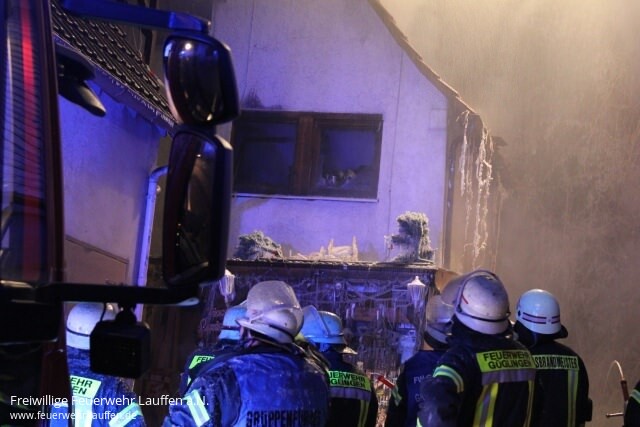 Nahezu abgebrannt ist ein älteres Einfamilienhaus in der Brackenheimer Straße kurz vor 22.00 Uhr. Der Brand brach im Wohnzimmer aus bislang unbekannter Ursache aus.