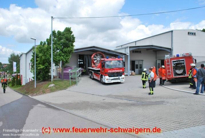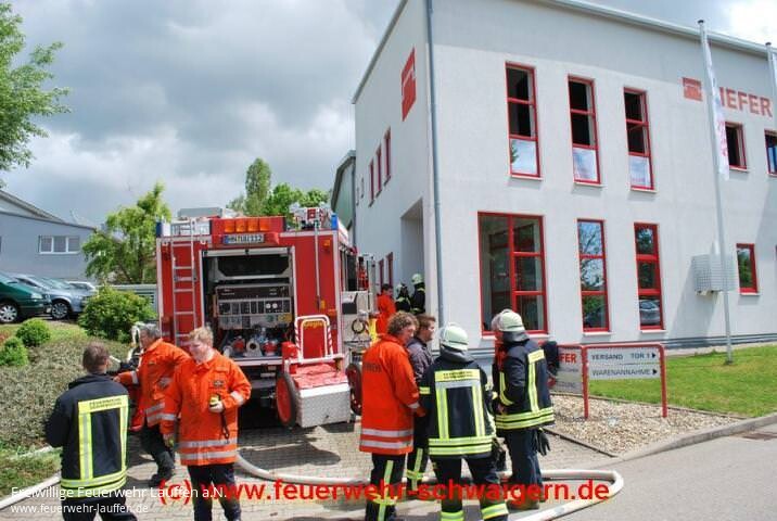 Die Feuerwehr wurde über den Feuerwehrruf zu einem Brand in einem Industriegebäude in der Steinhäldenstrasse im Schwaigerner Gewerbegebiet alarmiert.