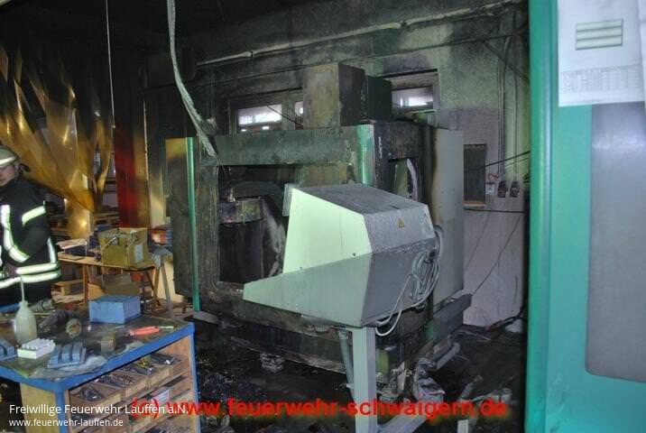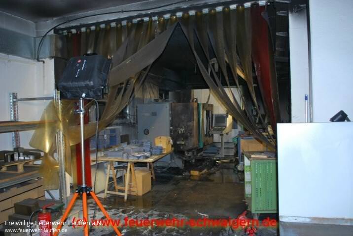 Im Bereich einer Fräsmaschine war es zu einem Brand gekommen. Firmenangehörige hatten noch versucht, dieses mit Feuerlöschern zu bekämpfen, mussten sich aber dann auf Grund der enormen Rauchenwicklung zurückziehen. Als sie erkannten, dass das Feuer nicht selbst gelöscht werden konnte, wurde auch umgehend die Feuerwehr alarmiert.