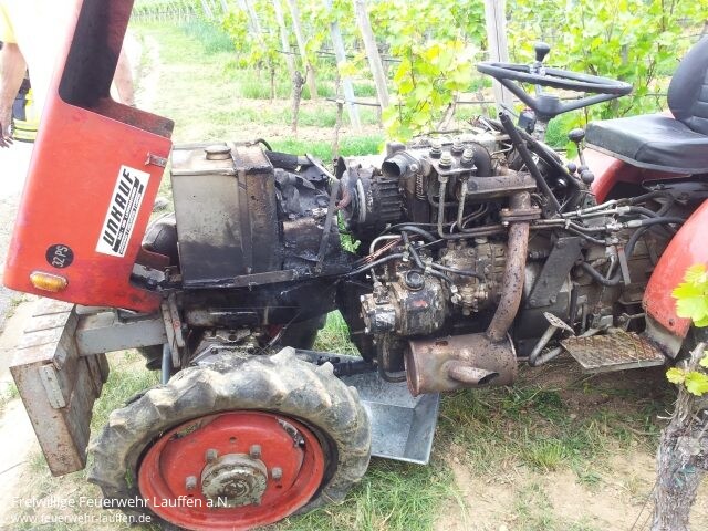 Aus bisher ungeklärter Ursache ist in den Weinbergen an einem landwirtschaftlichen Fahrzeug im Bereich des Römischen Gutshofes ein Brand ausgebrochen.
