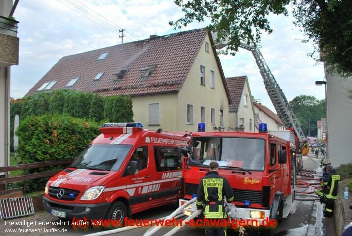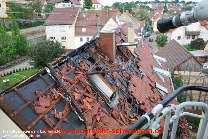 Die Feuerwehr Leingarten wurde bei der Brandbekämpfung von den Feuerwehren aus Lauffen a.N und Schwaigern unterstützt. Die Brandbekämpfung gestaltete sich sehr aufwändig, das sich das Feuer teilweise hinter Verkleidungen und Isolierungen ausgebreitet hatte. Mit der Drehleiter wurde das Dach an mehren Stellen geöffnet, um von oben, die Löschmaßnahmen zu unterstützen. Die Berufsfeuerwehr Heilbronn war mit dem Abrollbehälter Atemschutz vor Ort und versorgte die Einsatzkräfte mit Atemschutzgeräten. Seine Feuertaufe bestand das neue HLF 10 der Leingartener Wehr, das vor genau einer Woche beim Hersteller abgeholt worden war.