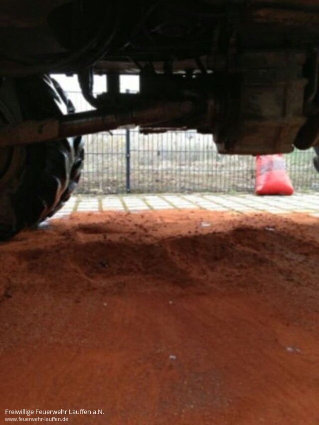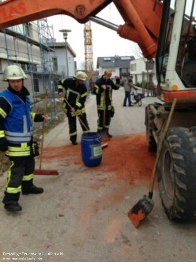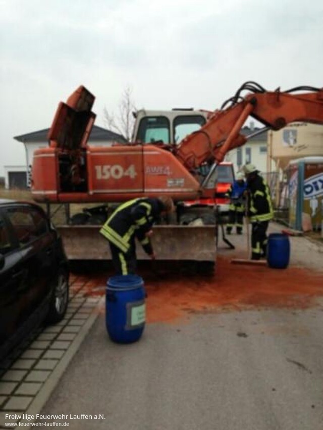 Bis zum Eintreffen der Feuerwehr hatten die Arbeiter auf der Baustelle schon mit Ölbindemittel dafür gesorgt, dass das Hydrauliköl nicht auf das umliegende Erdreich gelangt und im Bereich des Baggers auf der Fahrbahn verblieben ist. Von der Feuerwehr wurde der Bereich noch weiter mit Bindemittel abgestreut und die Verunreinigung aufgenommen.