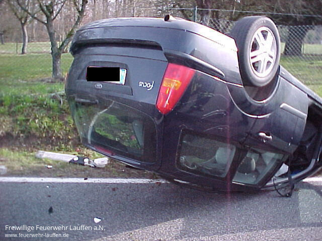 Ein Erdgas betriebenen Kraftfahrzeug überschlug sich im Kurvenbereich.